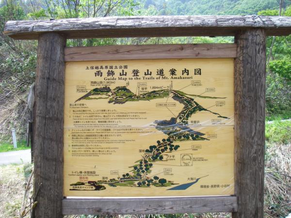 - 雨飾高原キャンプ場登山口駐車場(80分)荒菅沢(65分)笹平(20分)雨飾山山頂(70分)荒菅沢(65分)雨飾高原キャンプ場登山口駐車場