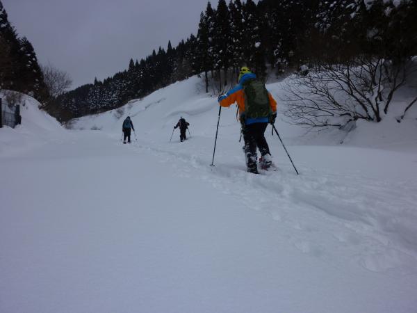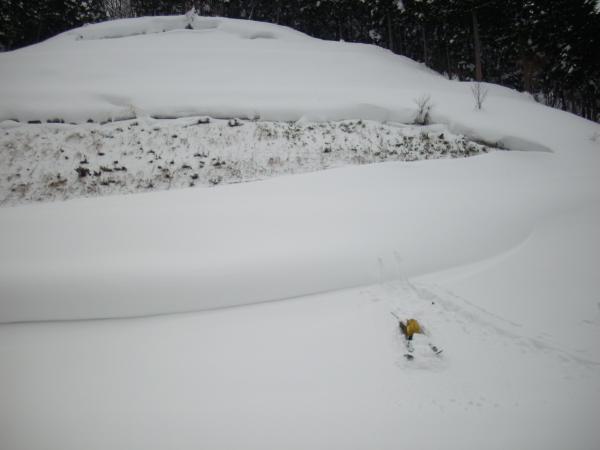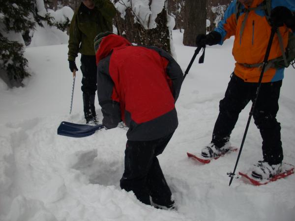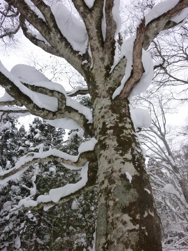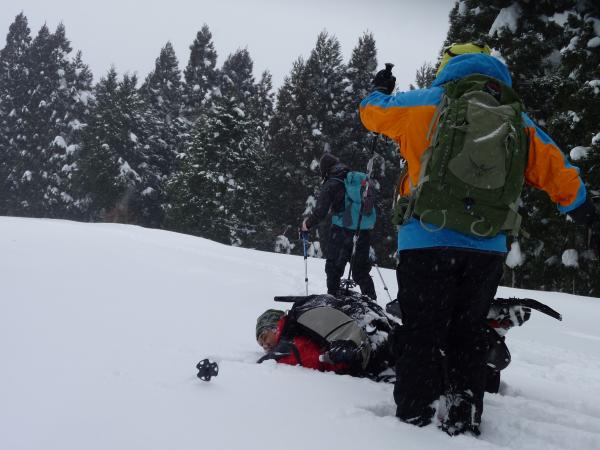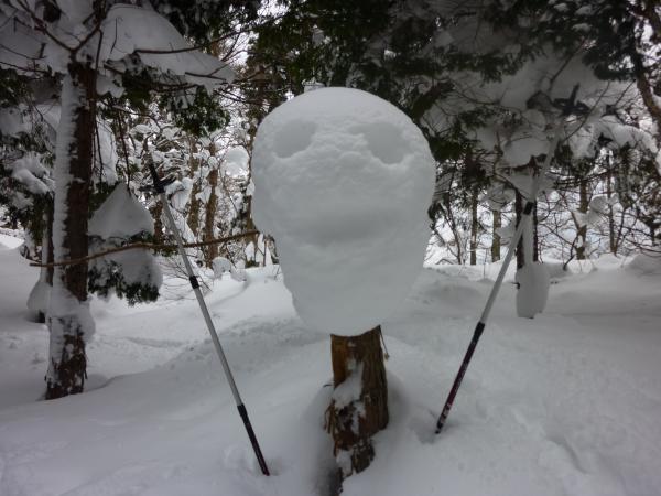 峰越峠のあずまや奥の尾根の取り付きはもちろん、道標や道しるべは雪に埋もれているため、注意が必要です。地形図・コンパスでルート確認を忘れずに行きましょう。江浪峠から東の尾根づたいにもっと進むつもりでしたが朝の出発が遅かったのと昼食・レクレーション!?に時間をとりすぎて(確信犯?)明るいうちに下山するために江浪峠でUターン、雪玉をにぎっても形がすぐくずれるほどの粉雪!絶好のスノーシューコンディションに、また訪れたいと思いました。下山後はエーガイヤちくさ温泉(大人400円)で入浴。