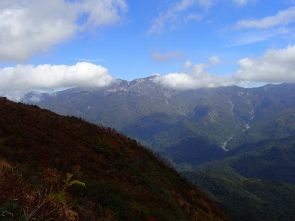 いよいよ山頂です。運良く雲が流れて白山頂上群が正面にあらわれました。美しい山容です。