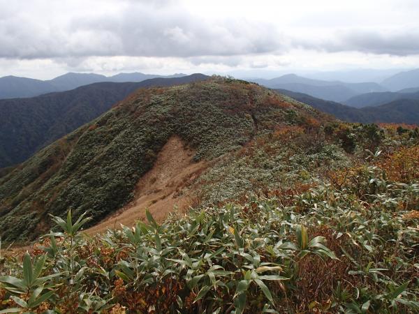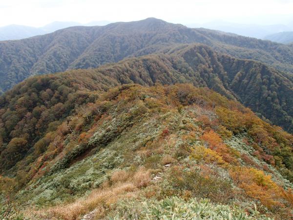 小原峠付近から低い木々の紅葉はもう少しというところです。刈安山付近まで登ってくると