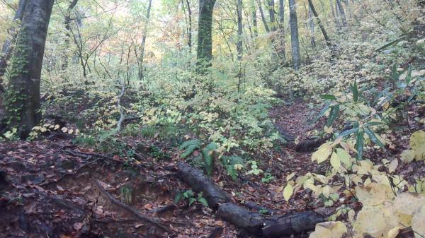 思ったより歩き応えのある道で、途中ロープが張ってある箇所や細い尾根を歩く場所もあります。