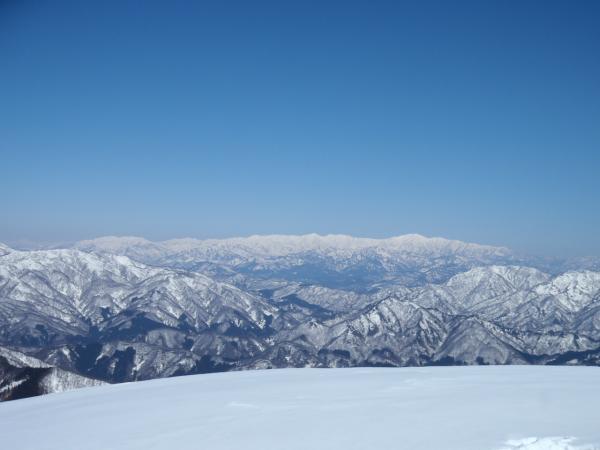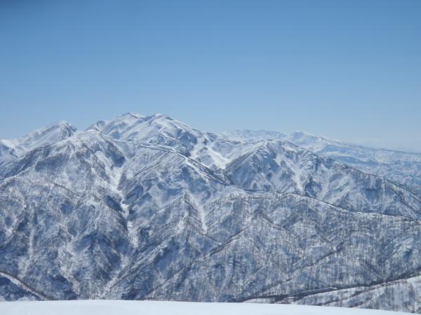 白銀に輝く飯豊連峰のの眺めは見事です。