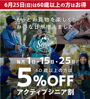 おはようございます。アルク店の今村です。 本日25日は60歳以上の好日山荘会員様...