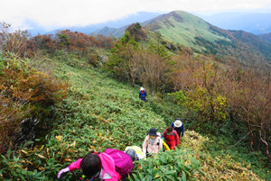 こんにちは、好日山荘マリエとやま店です。 『雨飾山』1963m 最後の登り 『女...