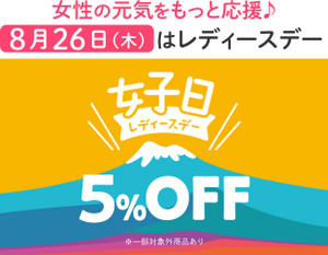 毎週木曜日はレディースデーです。 メンバーズ会員の女性限定で5%OFF(対象商品...
