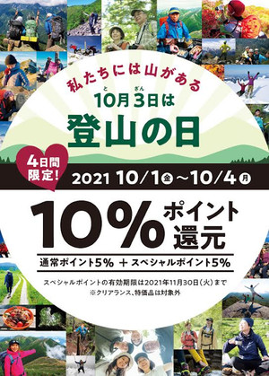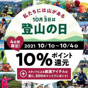 「10/3は登山の日」キャンペーン開催中!! 会員様限定「10%ポイント還元」 ...