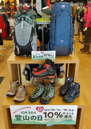 10月3日は「登山の日」という事で、 好日山荘では10月1日(金)~10月4日(...