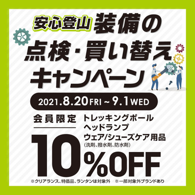 安心登山! 「装備の点検・買い替えキャンペーン」 ■2021年8月20日~9月1...