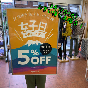 本日8月19日はレディースデー! 女性会員様限定で店内商品がレジにて5%OFF ...