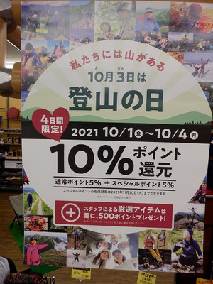 いつもありがとうございます。 好日山荘紀三井寺店です! 10月3日は登山の日 「...