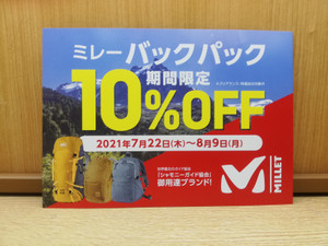 こんにちは、町田店スタッフです。 本日より8/9(月)までミレーのバックパックが...