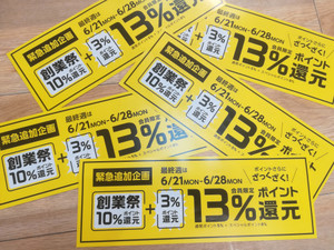 お急ぎ下さい!創業祭ポイント13%還元は本日まで!!