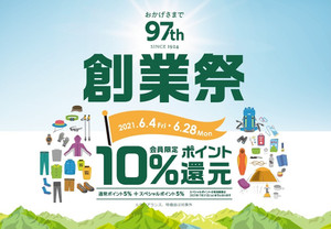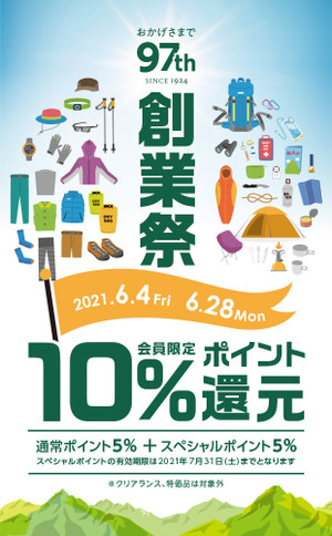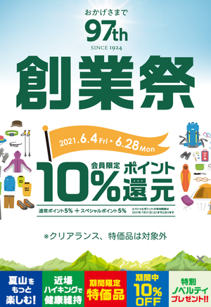 創業祭がはじまりました! 好日山荘ポイントが通常5%のところ 10%還元となりま...