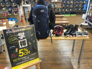 山岳部の学生さんも、そうでない学生さんもお得に!学割始まります!