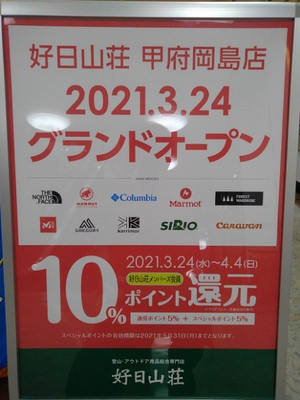 こんにちは!好日山荘甲府岡島店です! お待たせしました!3/24にオープンしまし...