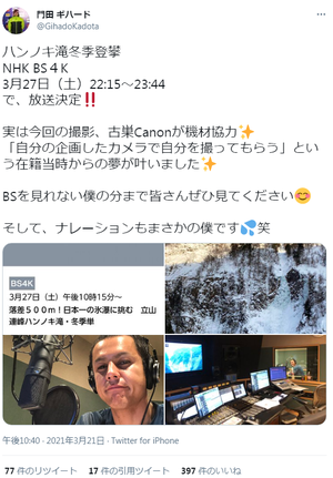 落差日本一!ハンノキ滝登攀の様子が放送されます!