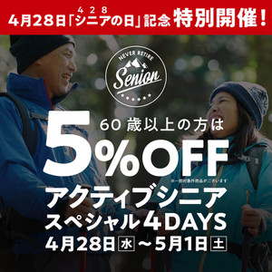 本日4/28(水)から5/1(土)の4日間、 アクティブシニアスペシャル4DAY...