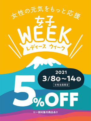 今日から女性限定5%OFF!レディースウィーク始まります!