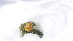 「福寿草」 四国の友人から 雪のフクジュソウの便りが届きました。 今週の寒波でま...