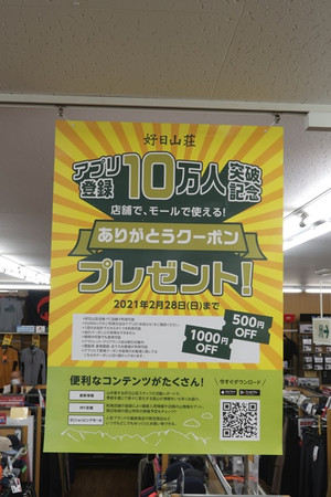 好日山荘アプリの登録者10万人突破を記念しまして 『ありがとうクーポン』プレゼン...