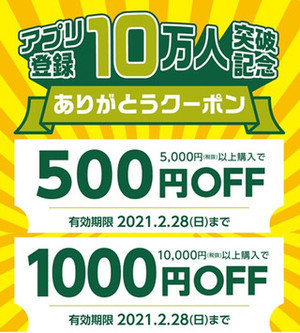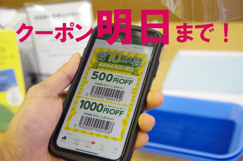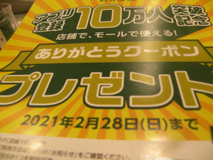 「アプリ登録10万突破記念ありがとうクーポン」の使用期限は本日最終日