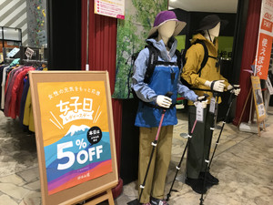 木曜日は好日山荘 レディースデイ 女性のお客様、メンバーズカードご提示で、 5%...