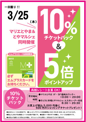 明日は『マリエポイント5倍』&『10%チケットバック』『春山応援フェア』『レディースデー』のコラボで大変なことに♫