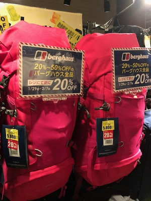 こんにちは!銀座好日山荘です! バーグハウスのザックがカラー限定で超!お買得です...