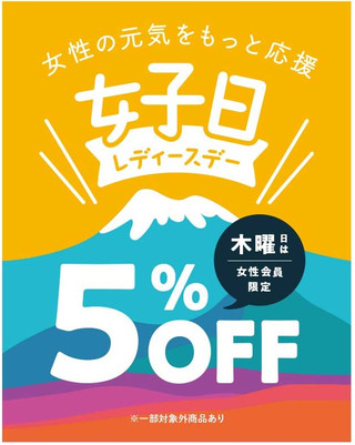 本日はレディースデーです♡ 女性会員様、お買得です!! 店内商品が通常価格より5...