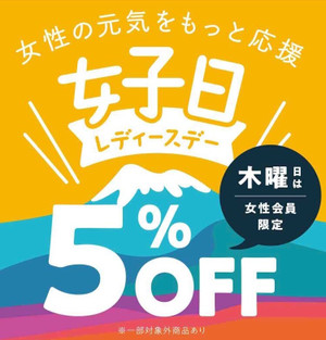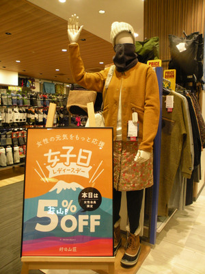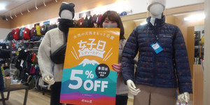 本日は2021年最初の女子日レディースデーです、女性の好日山荘メンバーズカード会員様は店内商品が一部対象外はございますが5%OFFにてご購入できるオトクな一日です。