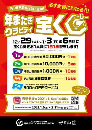 隣接のクライミングジム、グラビティリサーチ姫路の年末年始イベント【年またぎグラビティ宝くG!】始まります!