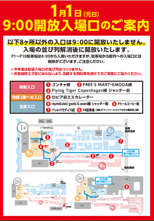 元日の営業時間は9:00~21:00となります。 また、以下の通り9:00に開放...