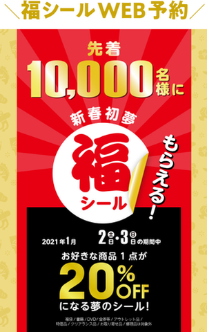 【新春初夢企画】何でも1点20%OFFになる福シール、web予約受付中!