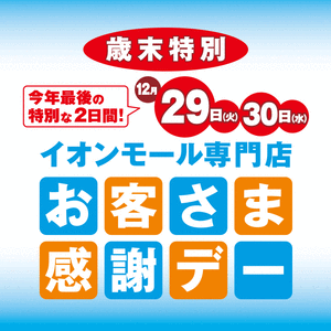 【年末年始の営業時間のご案内】12月末までのキャンペーンもあります!急げ~!