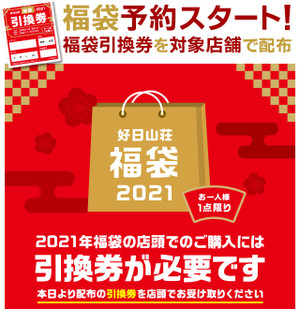 いつも好日山荘をご利用頂き誠にありがとうございます。 2021年度の福袋の販売に...