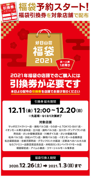 【2021年の福袋引換券の配布は終了致しました】 新年最初のお楽しみ! 2021...