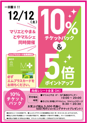 明日は、マリエポイント5倍+チケットバックで更にお得です