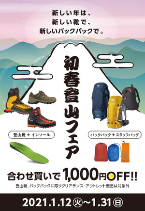 【初春登山フェア】合わせ買いで1000円お得!!
