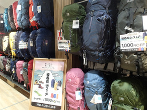 新春登山フェア ザックとスタッフバッグセットで¥1,000OFF!