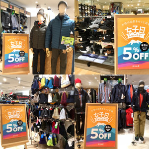 本日は木曜日になりますので、女子日レディースデーです。女性の好日山荘メンバーズカード会員様はお得になる一日です。