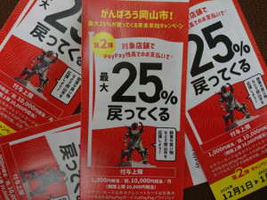 お買い物はpaypay払いがお得♪岡山市の最大25%還元キャンペーン始まりました!