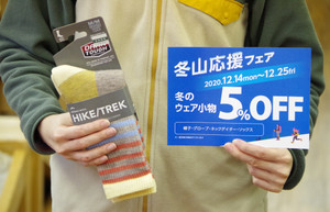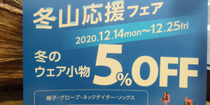 冬山応援フェア期間限定企画第二弾『冬のウェア小物5%OFF』始まります。