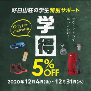 こんにちは!銀座好日山荘です! 暮れの学得キャンペーン開催中です! 学生証をご提...