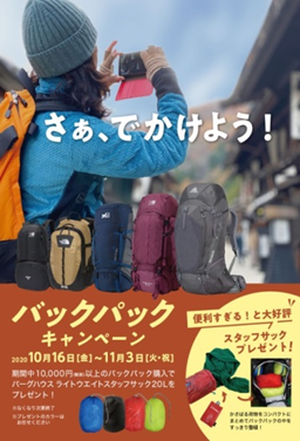10月16日(金)~11月3日(火・祝)の期間中 バックパック10,000円(税...
