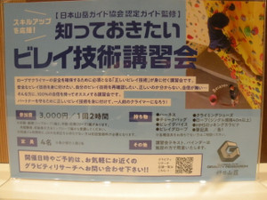 ビレイ講習会を姫路駅前店併設クライミングジム、グラビティリサーチ姫路にて開催致します。
