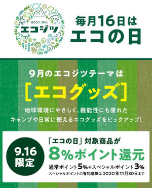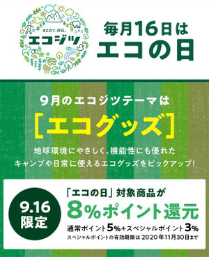 好日山荘会員様限定企画 9月16日(水) 1日限定エコの日 対象商品のご購入...