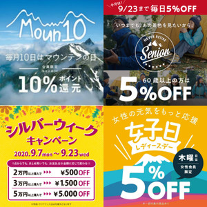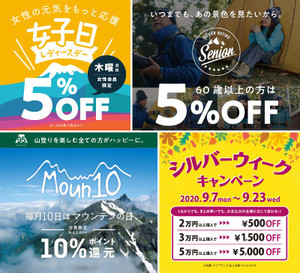 9月10日は「マウンテンの日」10%ポイント還元&レディスデー5%オフ