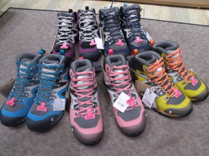 カラフルな登山靴、御座います。本日はレディースデーなので、お色見に拘りのある貴女も是非ぜひお試し下さい!