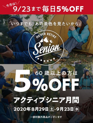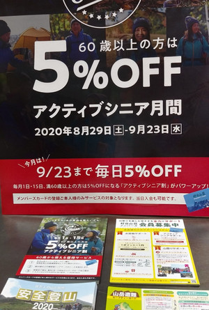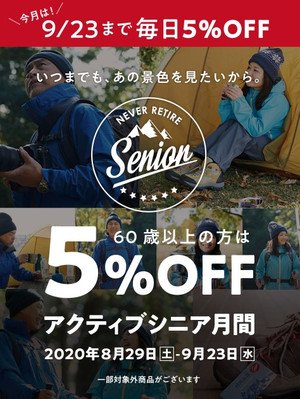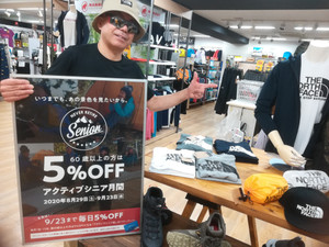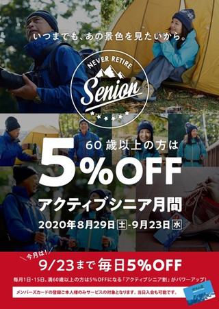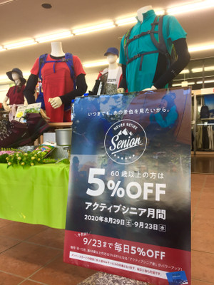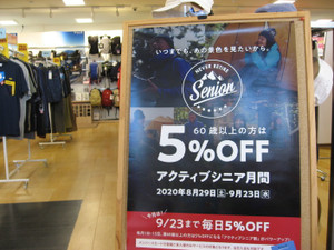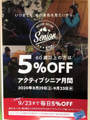 60歳以上の方必見!本日から9/23まで、お買物が5%OFFになります!!