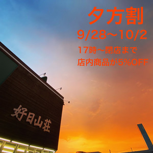9月もやります♪「夕方割」17時以降のお買物が5%OFF❤